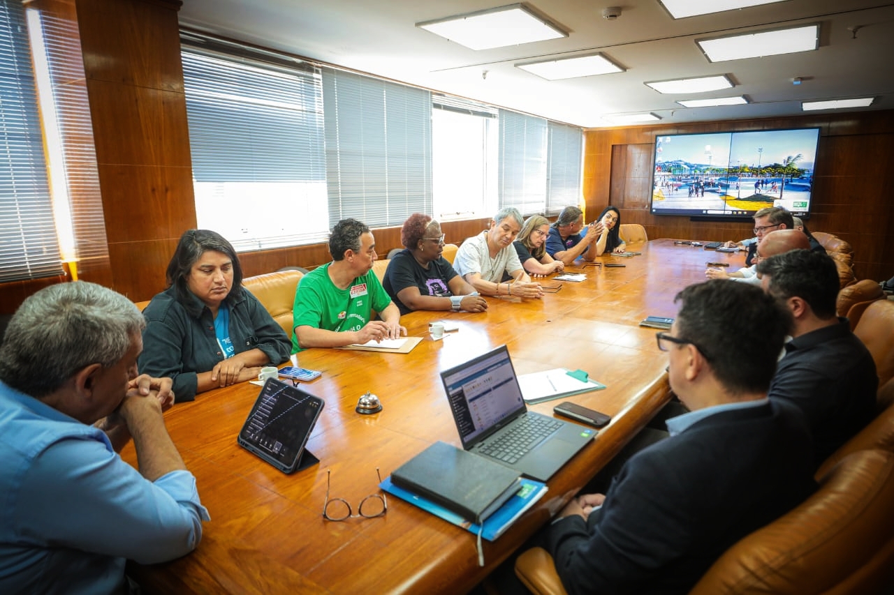 Porto Alegre, RS, Brasil 23/10/2025: Com a presença do prefeito, Sebastião Melo, foi realizada na manhã desta quinta-feira (23), na sala de reuniões do 17º andar do Centro Administrativo Municipal Guilherme Socias Villela (CAM), reunião entre integrantes do governo e do Sindicato dos Municipários de Porto Alegre (Simpa). Foto: Alex Rocha/PMPA