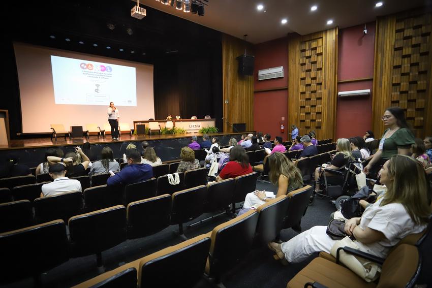 Porto Alegre, RS, 24/10/2025 Secretaria Municipal de Saúde (SMS) realiza o I Seminário Municipal da Saúde da Pessoa com Deficiência: a inclusão é o plano, no salão nobre da UFCSPA. Mesa de abertura (esq. para dir.): representando a SMIDH, Willian Tempel, representando a SES/RS chefe da seção das Redes Políticas Transversais, Mariana Viana da Silva, a diretora-adjunta da DAPS/SMS, Caroline Ceolin, representando a UFCSPA, Núcleo de Inclusão, Luiza Maria de Oliveira Braga Silveira, o coord. adjunto do CMS de POA, Waldir Bonhgas e o pres. em exercício do Cons. Municipal dos Direitos da Pessoa com Deficiência de POA, Adilson Luis Pimetel Corlassoli.