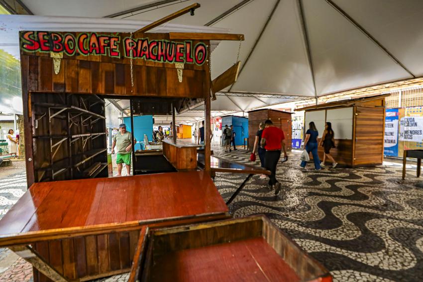 Porto Alegre, RS, Brasil, 24/10/2025: Segue a montagem das bancas e estandes da 71ª edição da Feira do Livro de Porto Alegre, na tarde desta sexta-feira (24). O evento ocorrerá de 31 de outubro a 16 de novembro na Praça da Alfândega, bairro Centro Histórico da capital gaúcha. Foto: Alex Rocha/PMPA