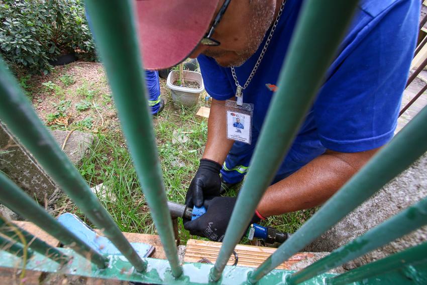 Porto Alegre, RS. 24/10/2025. DMAE As visitas às residências para troca de hidrômetro são realizadas por agentes identificados com uniformes e crachás da empresa Contágio, representada também pela sigla CCPO.