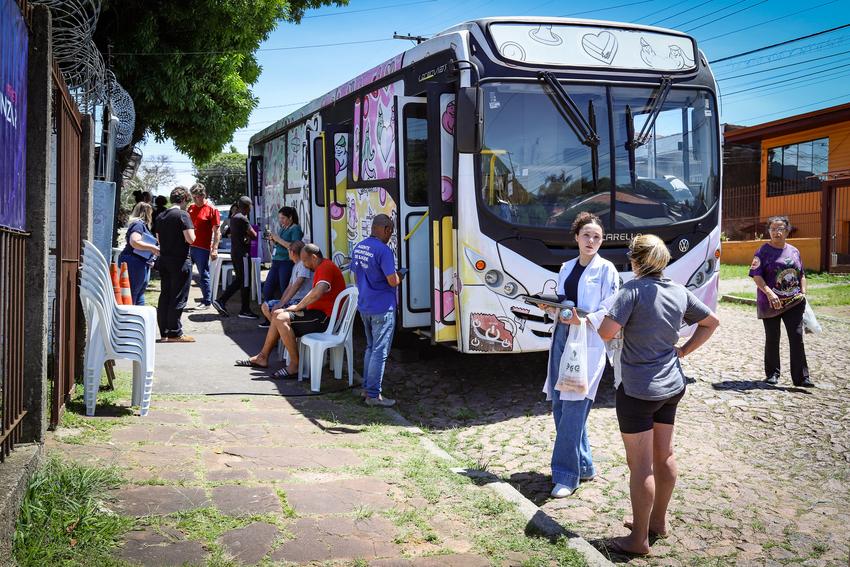 Porto Alegre, RS, 24/10/2025 Uma das unidades móvel de saúde da Secretaria Municipal de Saúde está realizando atendimentos, temporariamente, da unidade de saúde Vila Maria da Conceição durante o período que está passa avaliação técnica para laudo estrutural. A UM foi estacionada na rua Carios de Laet junto a passagem Amália Figueiroa.