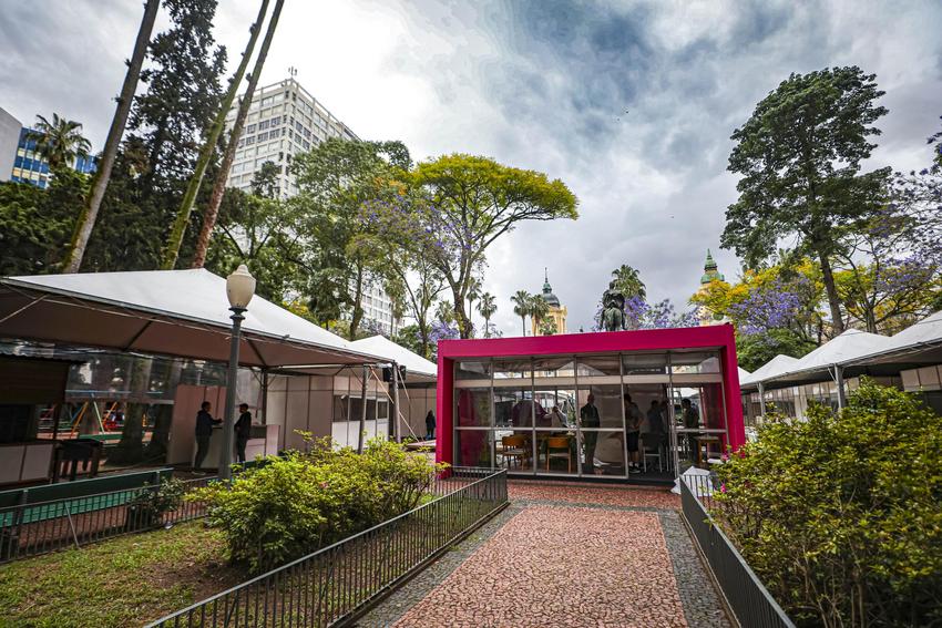 Porto Alegre, RS, Brasil, 29/10/2025: Segue a montagem das bancas e estandes da 71ª edição da Feira do Livro de Porto Alegre, na tarde desta quarta-feira (29). O evento ocorrerá de 31 de outubro a 16 de novembro na Praça da Alfândega, bairro Centro Histórico da capital gaúcha. Foto: Alex Rocha/PMPA