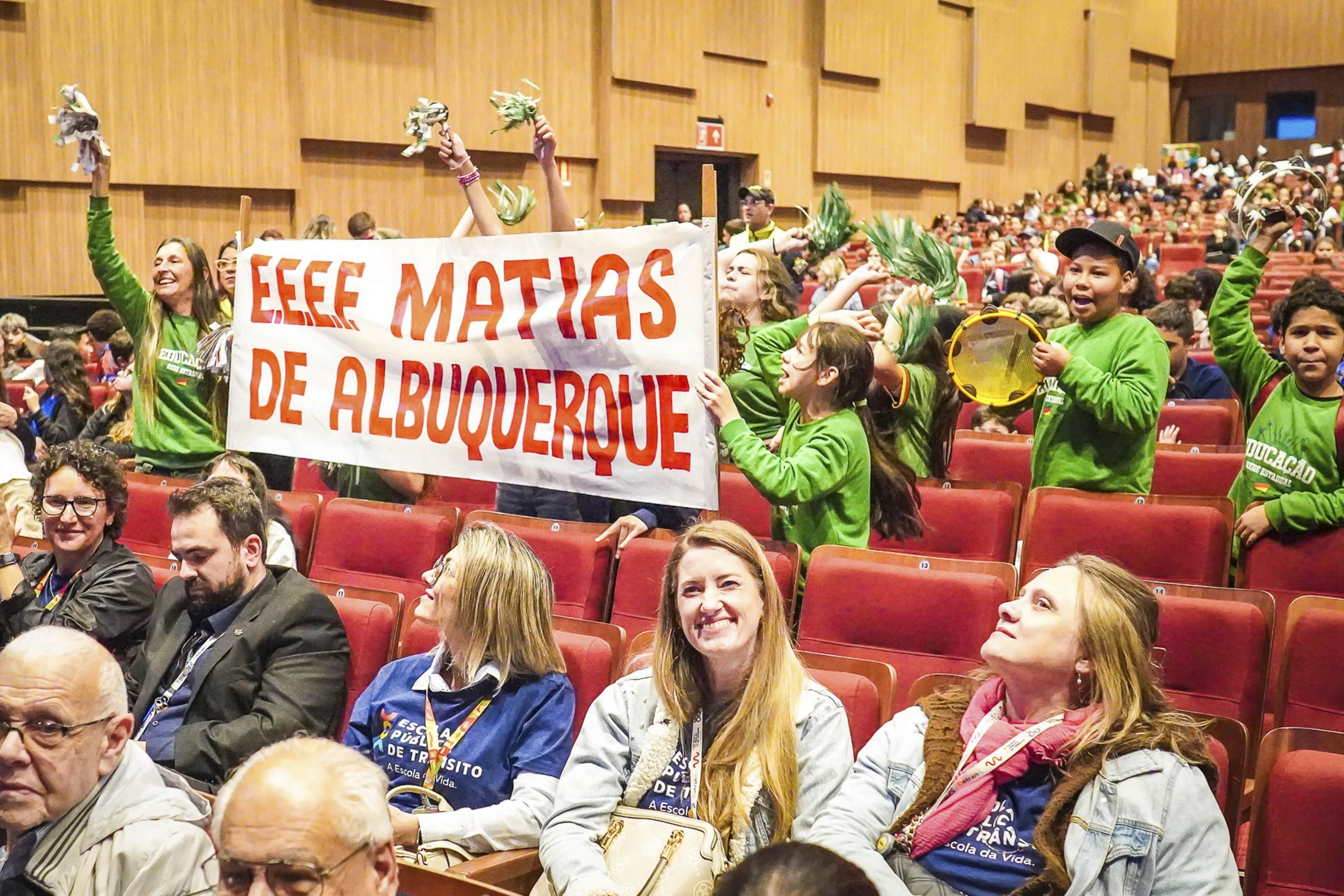 Porto Alegre, RS, Brasil, 30/10/2025: A prefeitura, por meio da Empresa Pública de Transporte e Circulação (EPTC), realiza a cerimônia de entrega do Prêmio EPTC de Educação para o Trânsito, no Salão de Atos da PUCRS. O evento, que reuniu alunos, professores, profissionais da imprensa, empresas e pessoas idosas, reconhece iniciativas que contribuem para um trânsito mais seguro, humano e sustentável. O prêmio, que integra as ações da Escola Pública de Mobilidade contou com 1.328 trabalhos inscritos em 2025, o maior número da história da premiação. O crescimento tem sido constante: foram 856 inscrições em 2023 e 517 em 2022, um aumento de 157% em três anos, refletindo o engajamento crescente da comunidade escolar, da imprensa e de instituições parceiras com a temática da segurança viária. Foto: Gustavo Roth/EPTC/PMPA