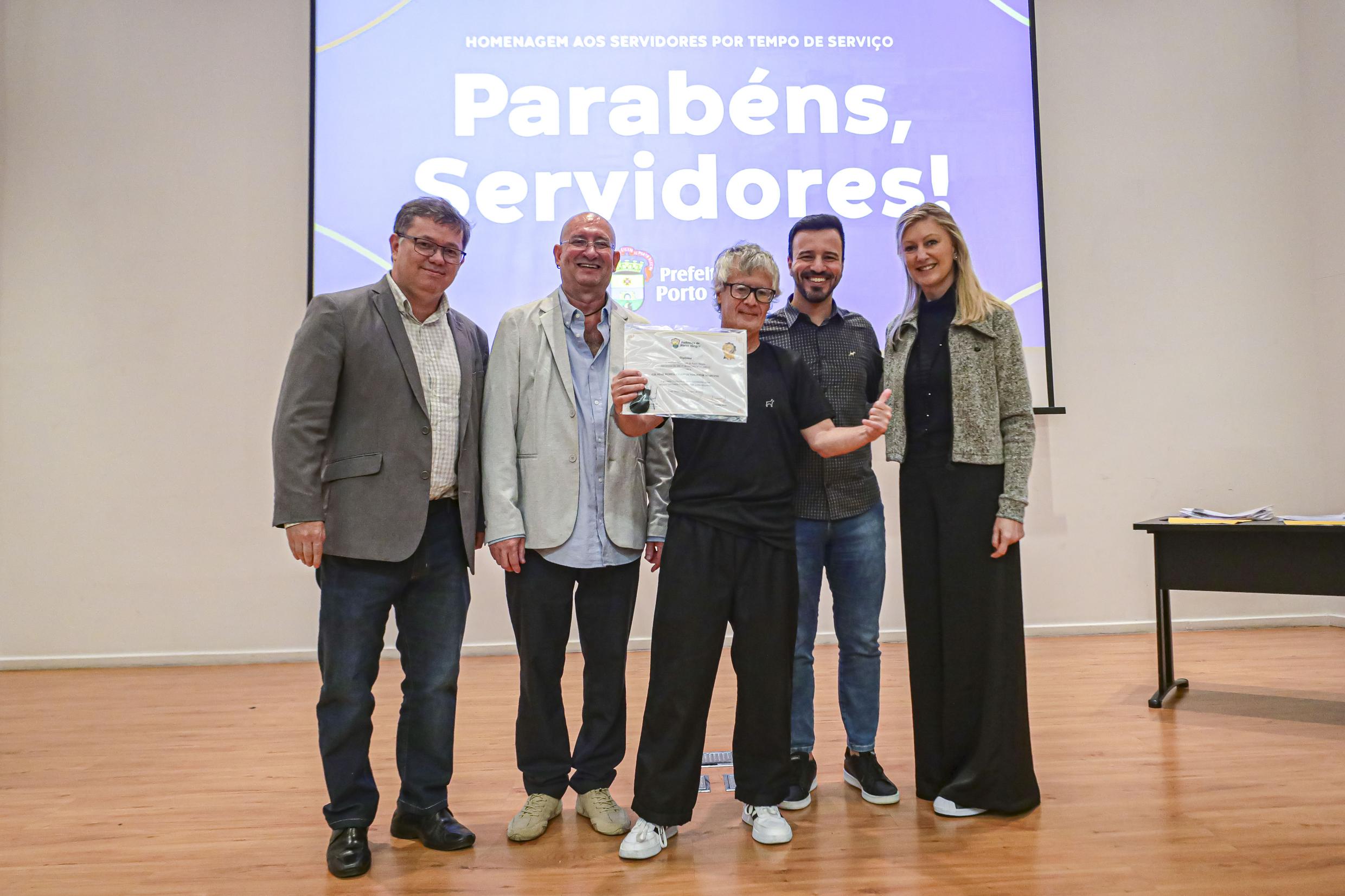 Porto Alegre, RS, Brasil, 31/10/2025: Em um evento que contou com a presença da vice-prefeita, Betina Worm, foi realizada na tarde desta sexta-feira (31), no auditório da Associação dos Auditores Fiscais da Receita Municipal de Porto Alegre (AIAMU), no bairro Centro Histórico, uma cerimônia para homenagear os servidores municipais pelo seu Tempo de Serviço. Foto: Alex Rocha/PMPA