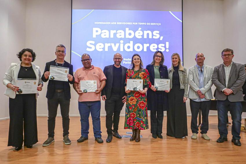 Porto Alegre, RS, Brasil, 31/10/2025: Em um evento que contou com a presença da vice-prefeita, Betina Worm, foi realizada na tarde desta sexta-feira (31), no auditório da Associação dos Auditores Fiscais da Receita Municipal de Porto Alegre (AIAMU), no bairro Centro Histórico, uma cerimônia para homenagear os servidores municipais pelo seu Tempo de Serviço. Foto: Alex Rocha/PMPA