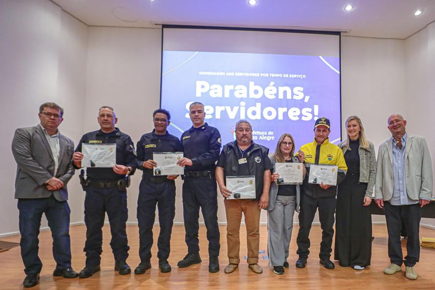 Porto Alegre, RS, Brasil, 31/10/2025: Em um evento que contou com a presença da vice-prefeita, Betina Worm, foi realizada na tarde desta sexta-feira (31), no auditório da Associação dos Auditores Fiscais da Receita Municipal de Porto Alegre (AIAMU), no bairro Centro Histórico, uma cerimônia para homenagear os servidores municipais pelo seu Tempo de Serviço. Foto: Alex Rocha/PMPA