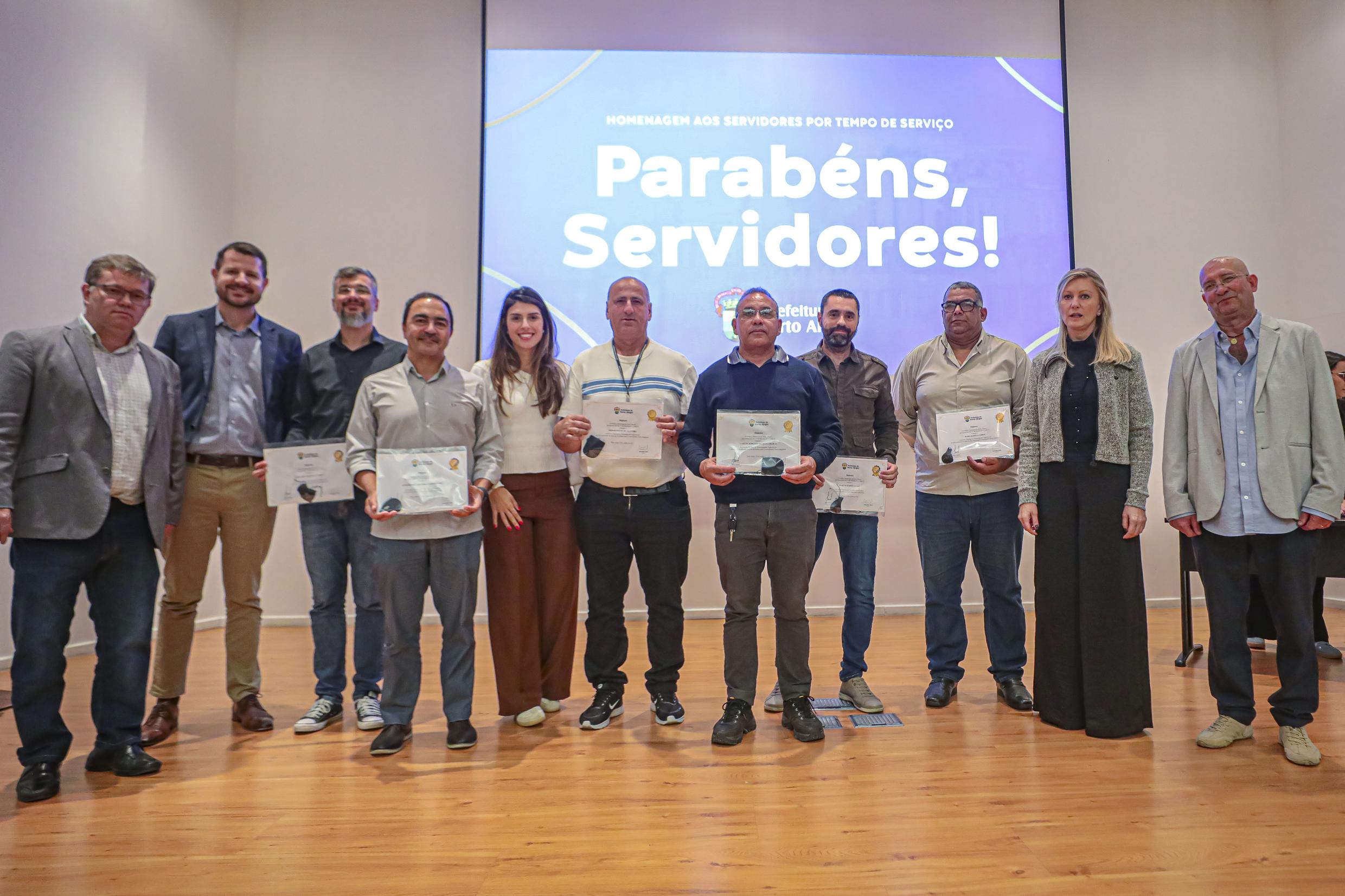 Porto Alegre, RS, Brasil, 31/10/2025: Em um evento que contou com a presença da vice-prefeita, Betina Worm, foi realizada na tarde desta sexta-feira (31), no auditório da Associação dos Auditores Fiscais da Receita Municipal de Porto Alegre (AIAMU), no bairro Centro Histórico, uma cerimônia para homenagear os servidores municipais pelo seu Tempo de Serviço. Foto: Alex Rocha/PMPA