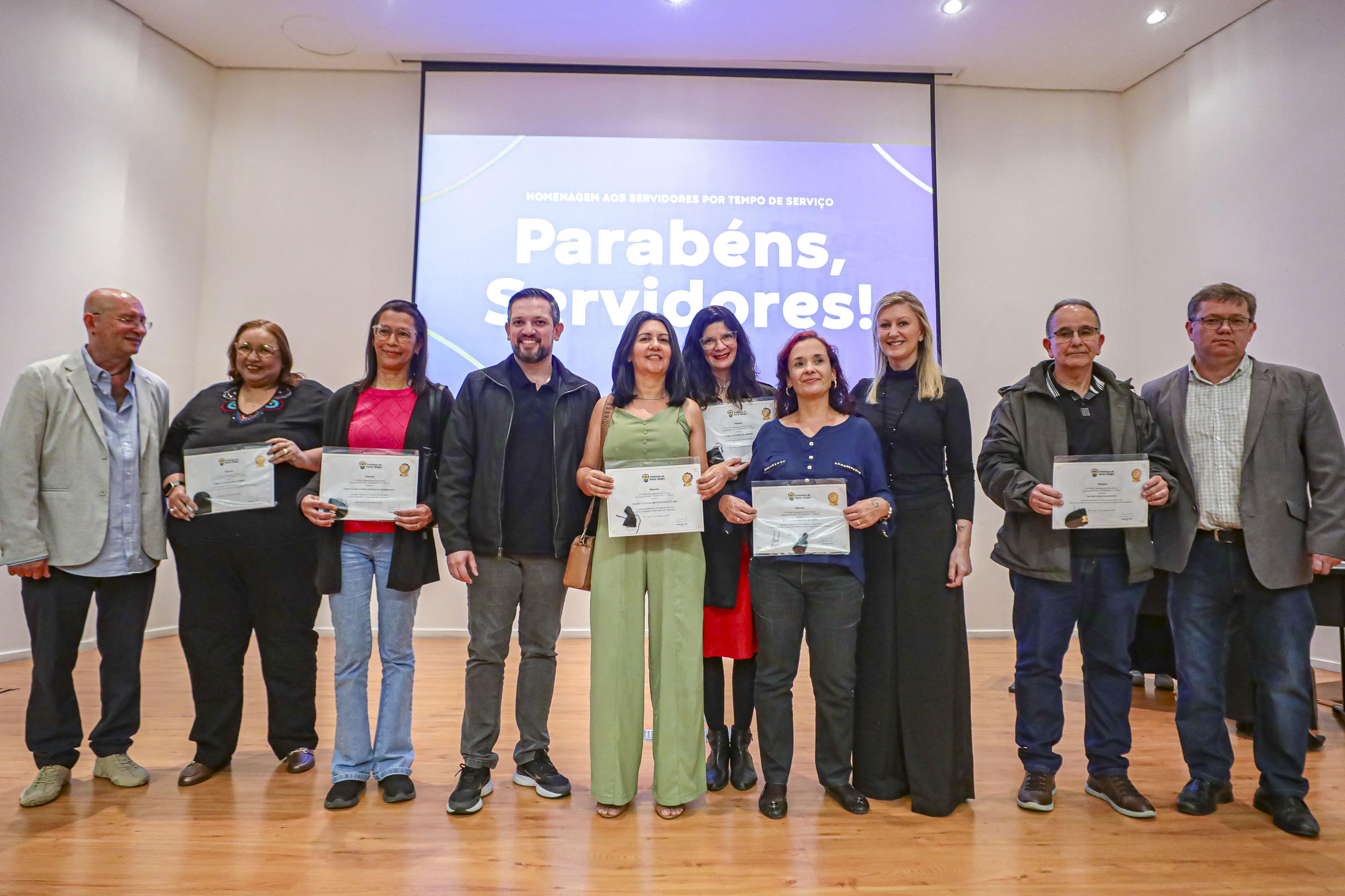 Porto Alegre, RS, Brasil, 31/10/2025: Em um evento que contou com a presença da vice-prefeita, Betina Worm, foi realizada na tarde desta sexta-feira (31), no auditório da Associação dos Auditores Fiscais da Receita Municipal de Porto Alegre (AIAMU), no bairro Centro Histórico, uma cerimônia para homenagear os servidores municipais pelo seu Tempo de Serviço. Foto: Alex Rocha/PMPA