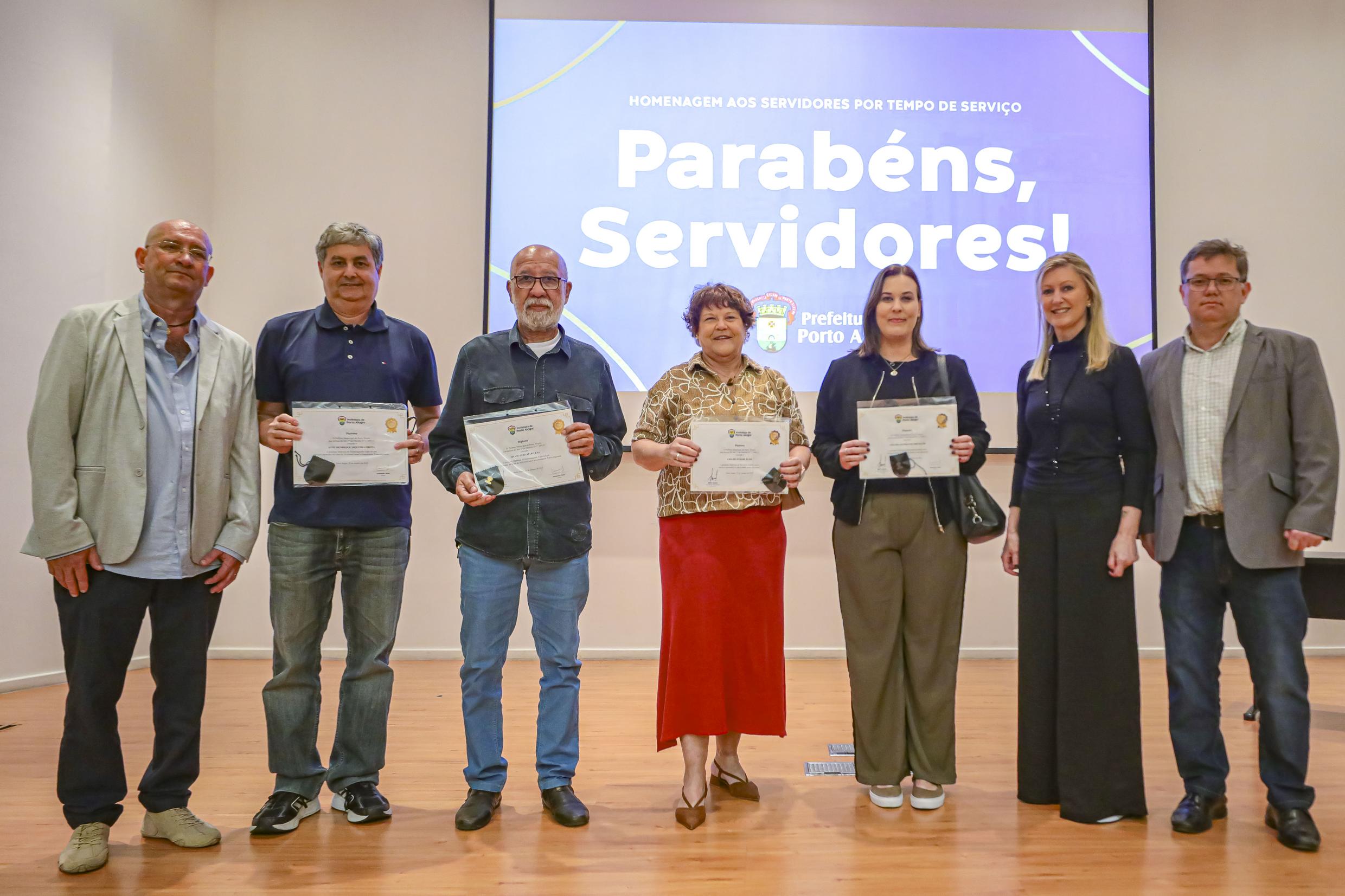 Porto Alegre, RS, Brasil, 31/10/2025: Em um evento que contou com a presença da vice-prefeita, Betina Worm, foi realizada na tarde desta sexta-feira (31), no auditório da Associação dos Auditores Fiscais da Receita Municipal de Porto Alegre (AIAMU), no bairro Centro Histórico, uma cerimônia para homenagear os servidores municipais pelo seu Tempo de Serviço. Foto: Alex Rocha/PMPA
