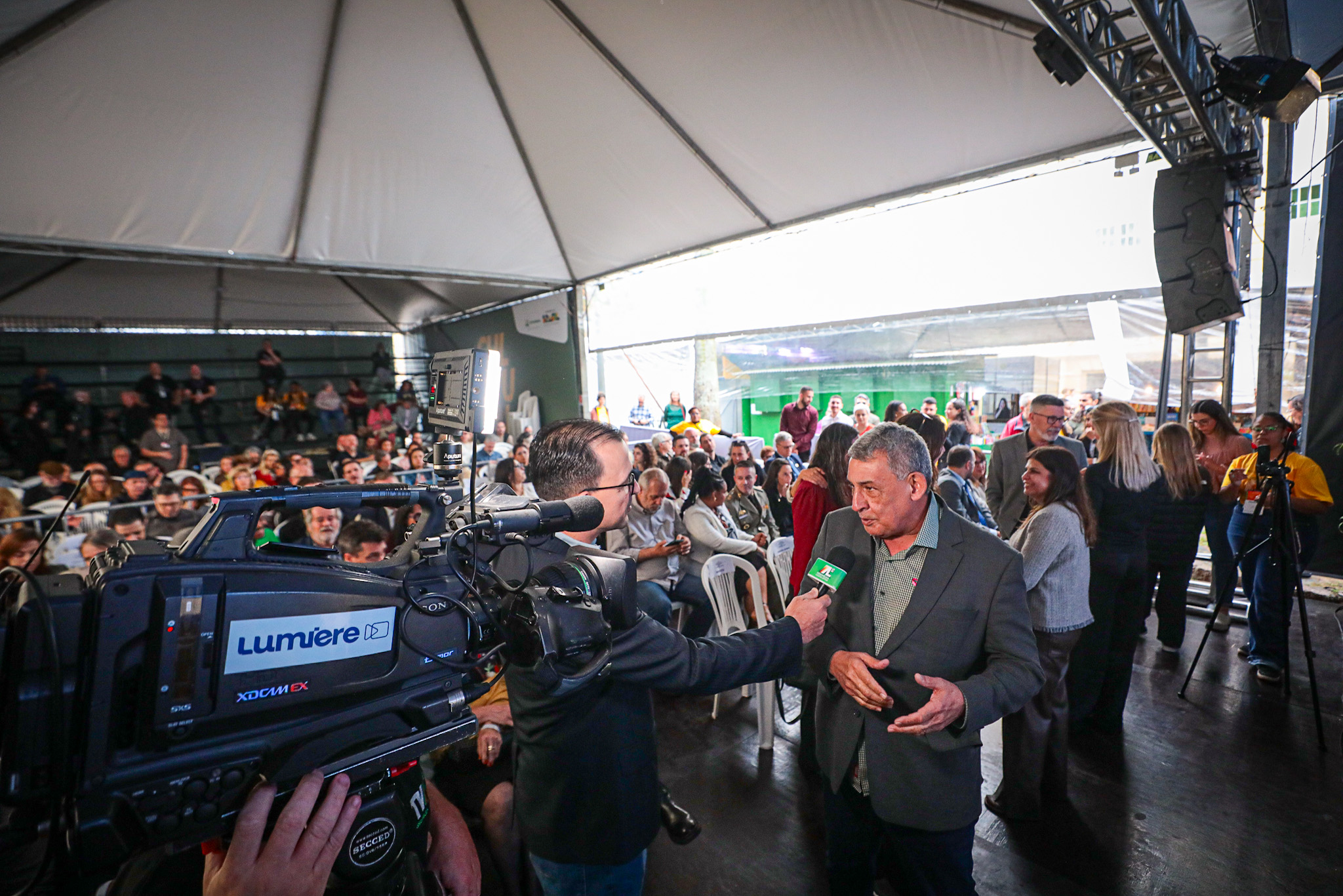 Porto Alegre, RS, Brasil, 31/10/2025: A 71ª edição da Feira do Livro de Porto Alegre, o maior evento literário do Rio Grande do Sul, abriu oficialmente nesta sexta-feira, 31, às 17h, no Teatro Petrobras Carlos Urbim, na Praça da Alfândega. A cerimônia teve o tradicional toque do sino e a presença de autoridades, da patrona desta edição, a escritora Martha Medeiros, e de representantes da Câmara Rio-Grandense do Livro e da Prefeitura de Porto Alegre. Foto: Alex Rocha/PMPA