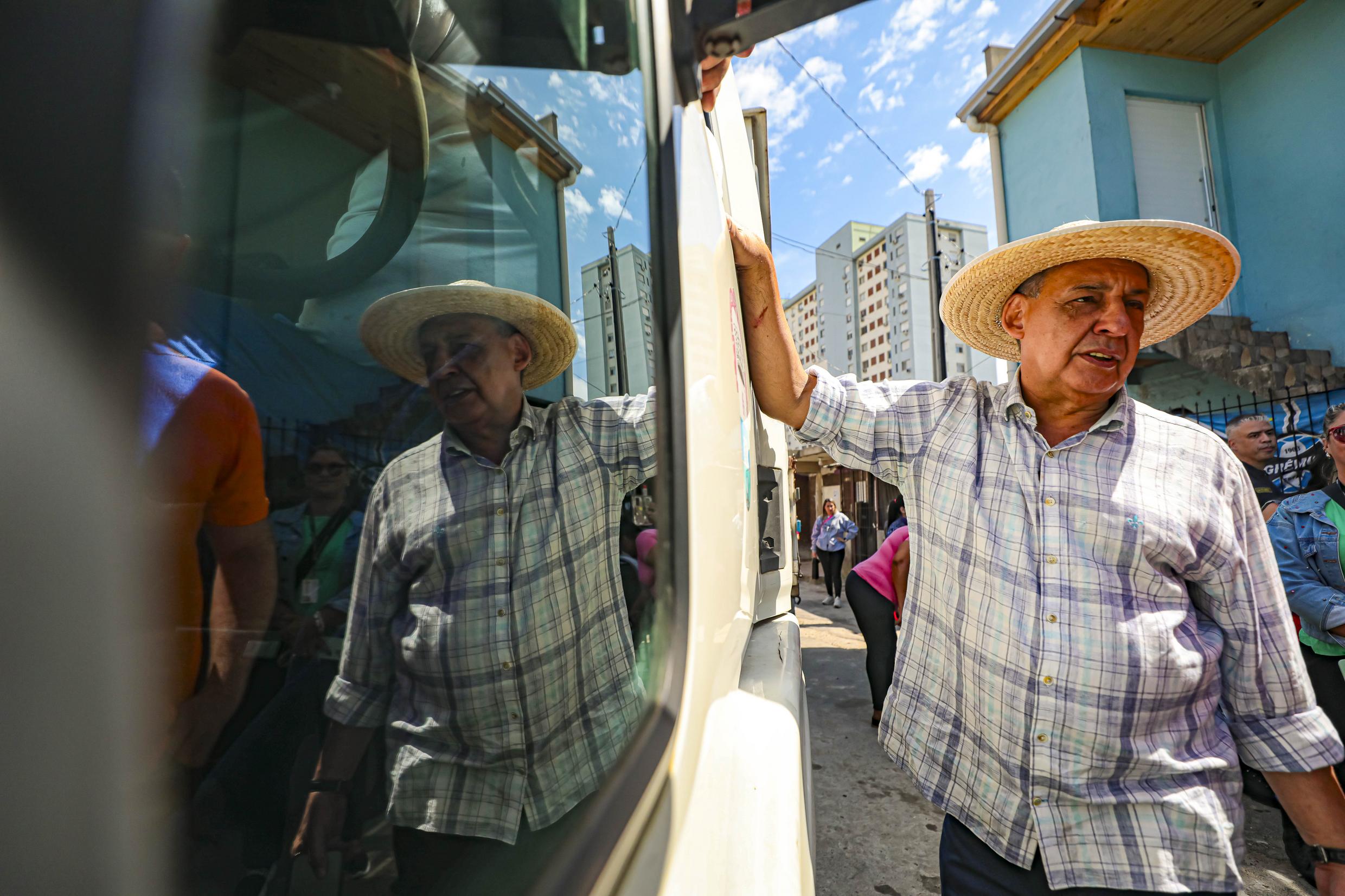 Porto Alegre, RS, Brasil, 01º/11/2025: O prefeito Sebastião Melo, secretários municipais e equipes técnicas participaram neste sábado, 1º, de mais uma edição do programa Mais Comunidade, desta vez na Região Centro. A ação contou com a presença de conselheiros e delegados do Orçamento Participativo (OP), além de lideranças comunitárias, em um roteiro de visitas a locais com demandas apresentadas pelos moradores. Foto: Alex Rocha/PMPA