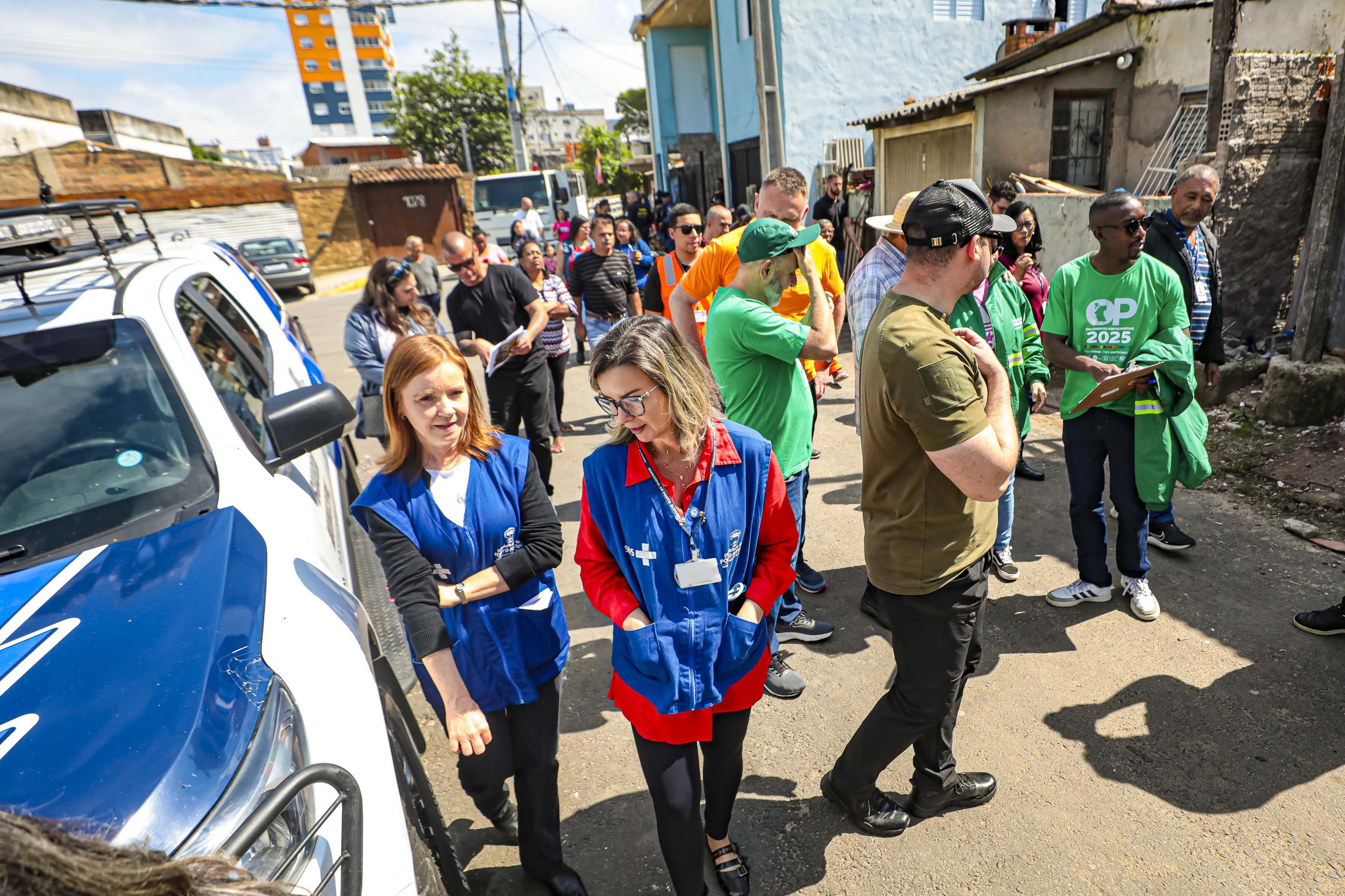 Porto Alegre, RS, Brasil, 01º/11/2025: O prefeito Sebastião Melo, secretários municipais e equipes técnicas participaram neste sábado, 1º, de mais uma edição do programa Mais Comunidade, desta vez na Região Centro. A ação contou com a presença de conselheiros e delegados do Orçamento Participativo (OP), além de lideranças comunitárias, em um roteiro de visitas a locais com demandas apresentadas pelos moradores. Foto: Alex Rocha/PMPA