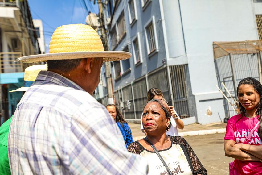 Porto Alegre, RS, Brasil, 01º/11/2025: O prefeito Sebastião Melo, secretários municipais e equipes técnicas participaram neste sábado, 1º, de mais uma edição do programa Mais Comunidade, desta vez na Região Centro. A ação contou com a presença de conselheiros e delegados do Orçamento Participativo (OP), além de lideranças comunitárias, em um roteiro de visitas a locais com demandas apresentadas pelos moradores. Foto: Alex Rocha/PMPA