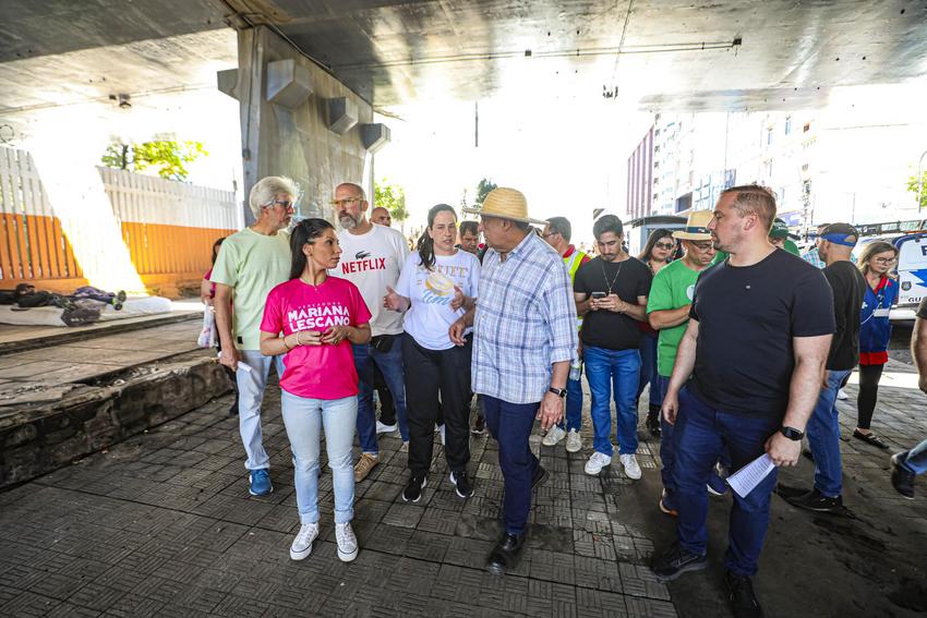 Porto Alegre, RS, Brasil, 01º/11/2025: O prefeito Sebastião Melo, secretários municipais e equipes técnicas participaram neste sábado, 1º, de mais uma edição do programa Mais Comunidade, desta vez na Região Centro. A ação contou com a presença de conselheiros e delegados do Orçamento Participativo (OP), além de lideranças comunitárias, em um roteiro de visitas a locais com demandas apresentadas pelos moradores. Foto: Alex Rocha/PMPA