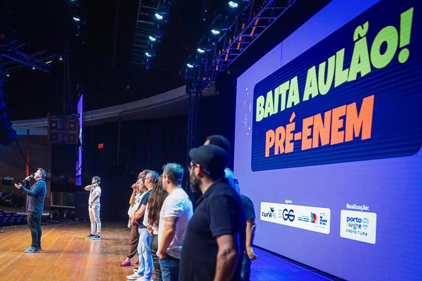 Porto Alegre, RS, Brasil, 02/11/2025: A Prefeitura de Porto Alegre realiza neste domingo, 2, o Baita Aulão!, uma revisão gratuita e intensiva voltada a estudantes em situação de vulnerabilidade social que irão prestar o Exame Nacional do Ensino Médio (Enem). O evento ocorre das 9h às 17h, no Auditório Araújo Vianna, com inscrições gratuitas. Foto: Alex Rocha/PMPA