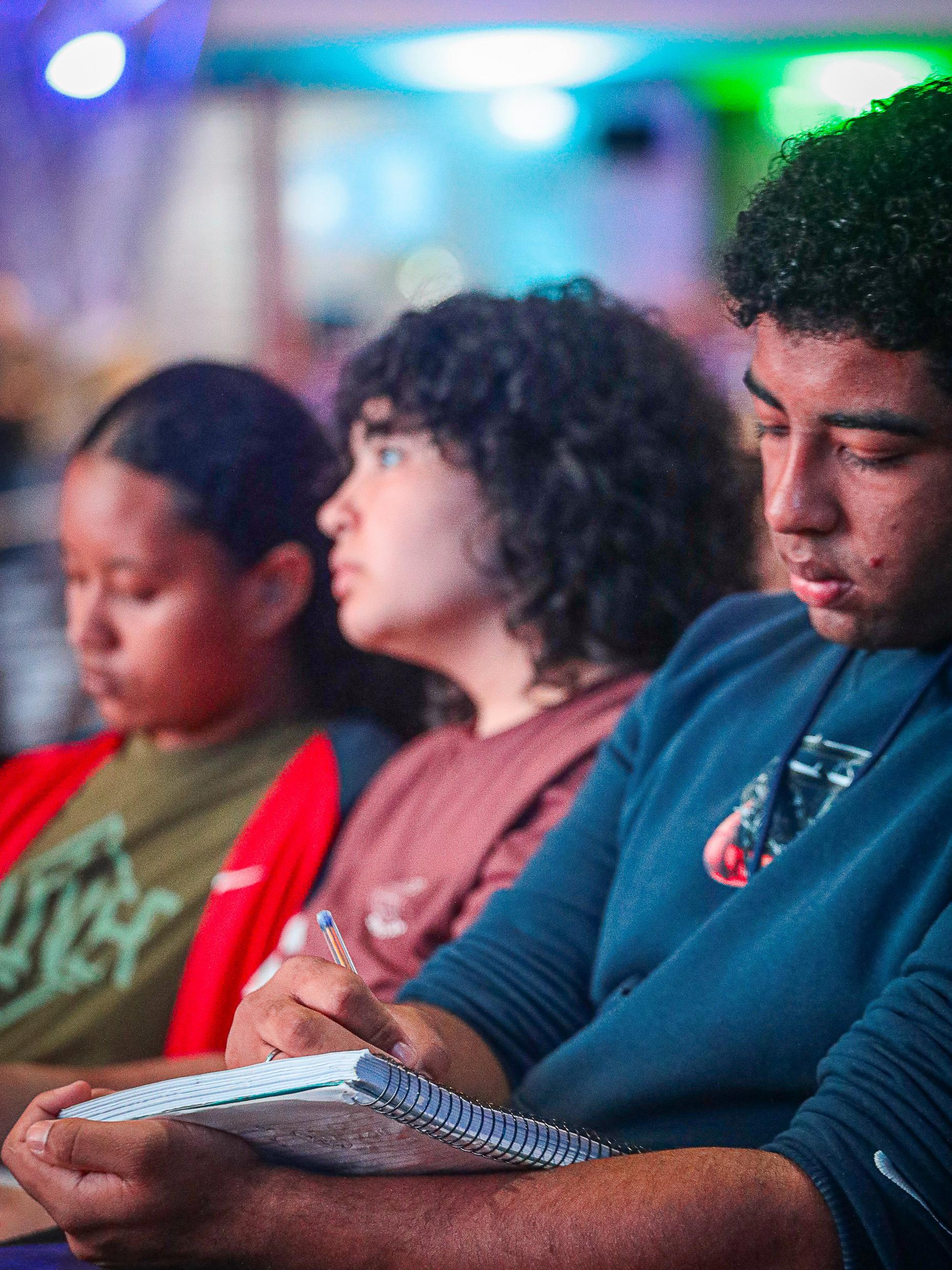 Porto Alegre, RS, Brasil, 02/11/2025: A Prefeitura de Porto Alegre realiza neste domingo, 2, o Baita Aulão!, uma revisão gratuita e intensiva voltada a estudantes em situação de vulnerabilidade social que irão prestar o Exame Nacional do Ensino Médio (Enem). O evento ocorre das 9h às 17h, no Auditório Araújo Vianna, com inscrições gratuitas. Foto: Alex Rocha/PMPA