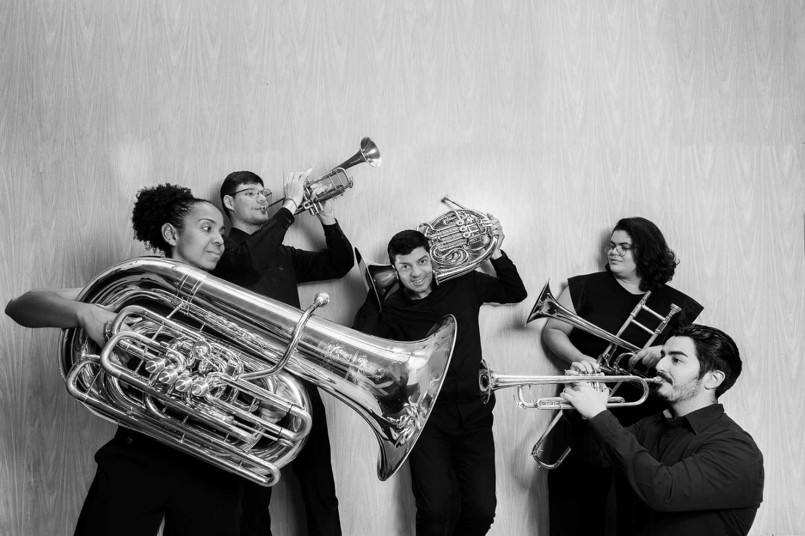 Porto Alegre, RS, Brasil, 04/11/2025: No sábado, 8 de novembro, às 11h, acontece a nona apresentação da série Concertos Capitólio da temporada 2025, com o quinteto Metais do Porto, formado por Moizes Cunha (trompete), Guilherme Guadagnin (trompete), Leandro Rodrigues (trompa), Sabryna Pinheiro (trombone) e Tais Nascimento (tuba). O grupo interpreta obras de Giovanni Gabrieli (1557-1612), Georges Bizet (1838-1875), André Lafosse (1890-1975), Bonfiglio de Oliveira (1894-1940), Ary Barroso (1903-1964), Samuel Barber (1910-1981) e Leonard Bernstein (1918-1990). A abertura do concerto será feita pela Camerata Violões Casa da Música. A apresentação, com entrada franca, ocorre na Cinemateca Capitólio, que fica na Rua Demétrio Ribeiro, 1085, no Centro Histórico de Porto Alegre. A curadoria do projeto é da Casa da Música POA. Foto: Leandro Rodrigues