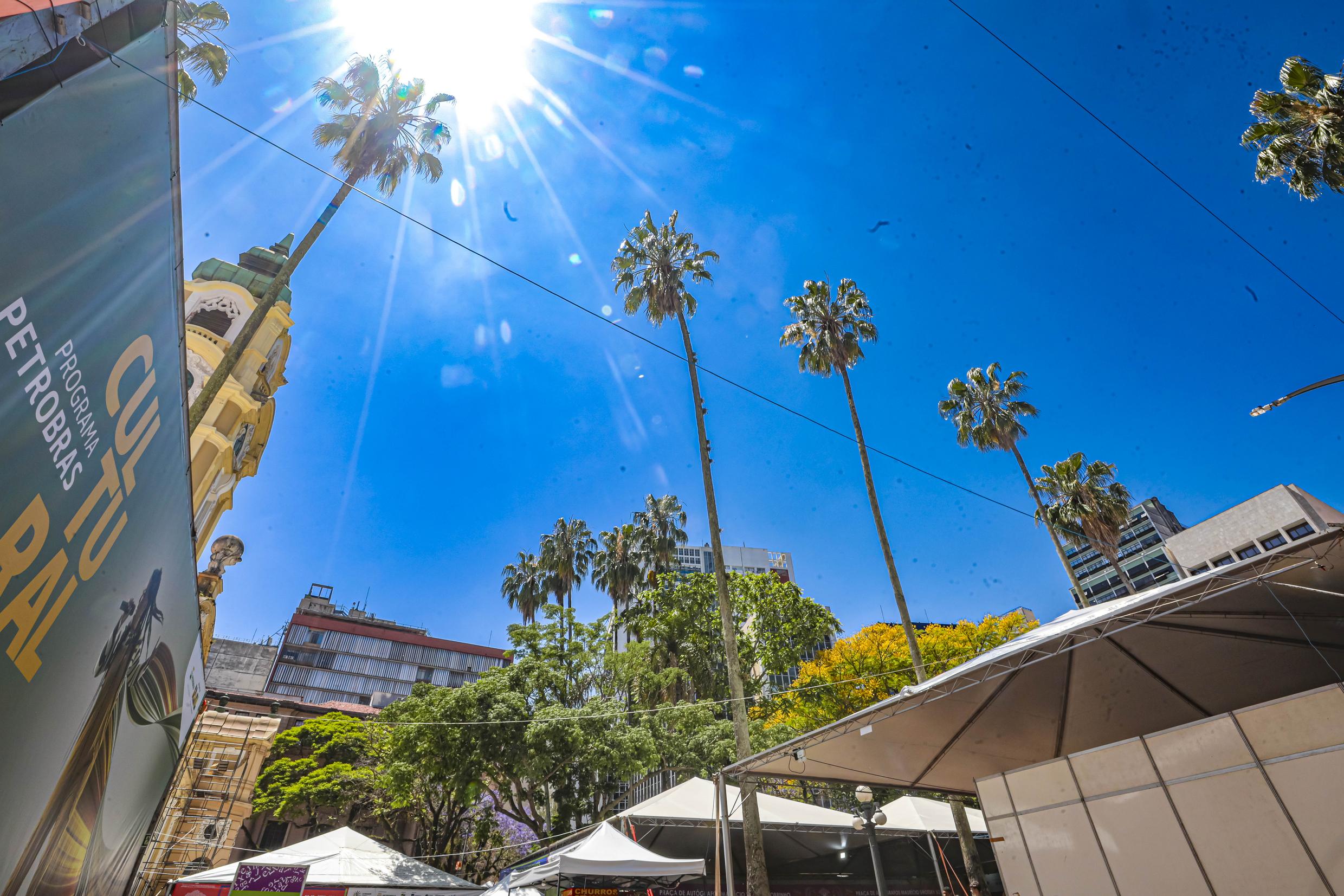 Porto Alegre, RS, Brasil, 04/11/2025: A movimentação de pessoas segue intensa nesta terça-feira (04) na Praça da Alfândega, no bairro Centro Histórico da Capital gaúcha, durante a 71ª edição da Feira do Livro de Porto Alegre. São 79 bancas de livros. No estande da prefeitura, localizado próximo à Praça dos autógrafos, o público pode conferir a exposição Patrimônio Imaterial: As Lendas Urbanas de Porto Alegre, organizado pela Secretaria Municipal da Cultura por meio do Museu Joaquim José Felizardo. A expectativa da organização é receber cerca de 1,5 milhão de visitantes, até o seu encerramento no dia 16/11. O horário de funcionamento é das 10h às 20h. Foto: Alex Rocha/PMPA
