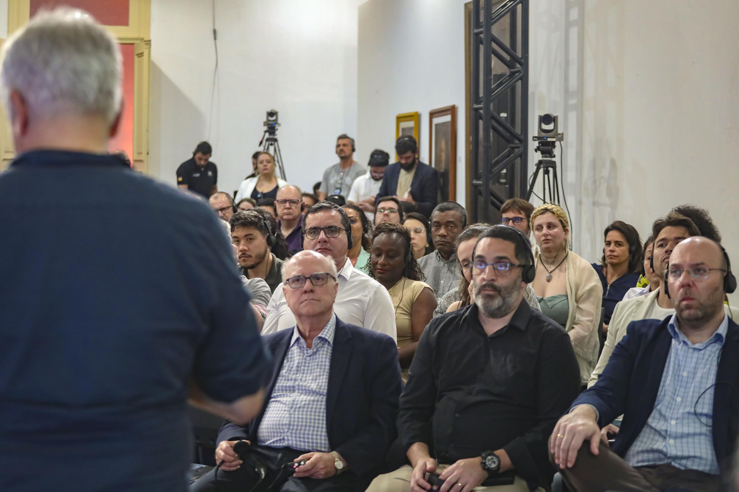 Porto Alegre, RS, Brasil, 04/11/2025: As conclusões iniciais de consultores contratados pela Agência Francesa de Desenvolvimento (AFD) sobre o turismo cultural na capital gaúcha foram apresentadas nesta terça-feira, 4, na sala Aldo Locatelli, no Paço Municipal (Praça Montevidéu, nº 10 – Centro Histórico). Ao longo da última semana, o grupo conheceu e coletou dados sobre Porto Alegre. As informações que serão divulgadas também vão levar em consideração os resultados de workshops sobre economia criativa e turismo e patrimônio. Os eventos, realizados nos dias 31 de outubro e 3 de novembro, foram promovidos pela Secretaria Municipal de Planejamento e AFD. Foto: Alex Rocha/PMPA