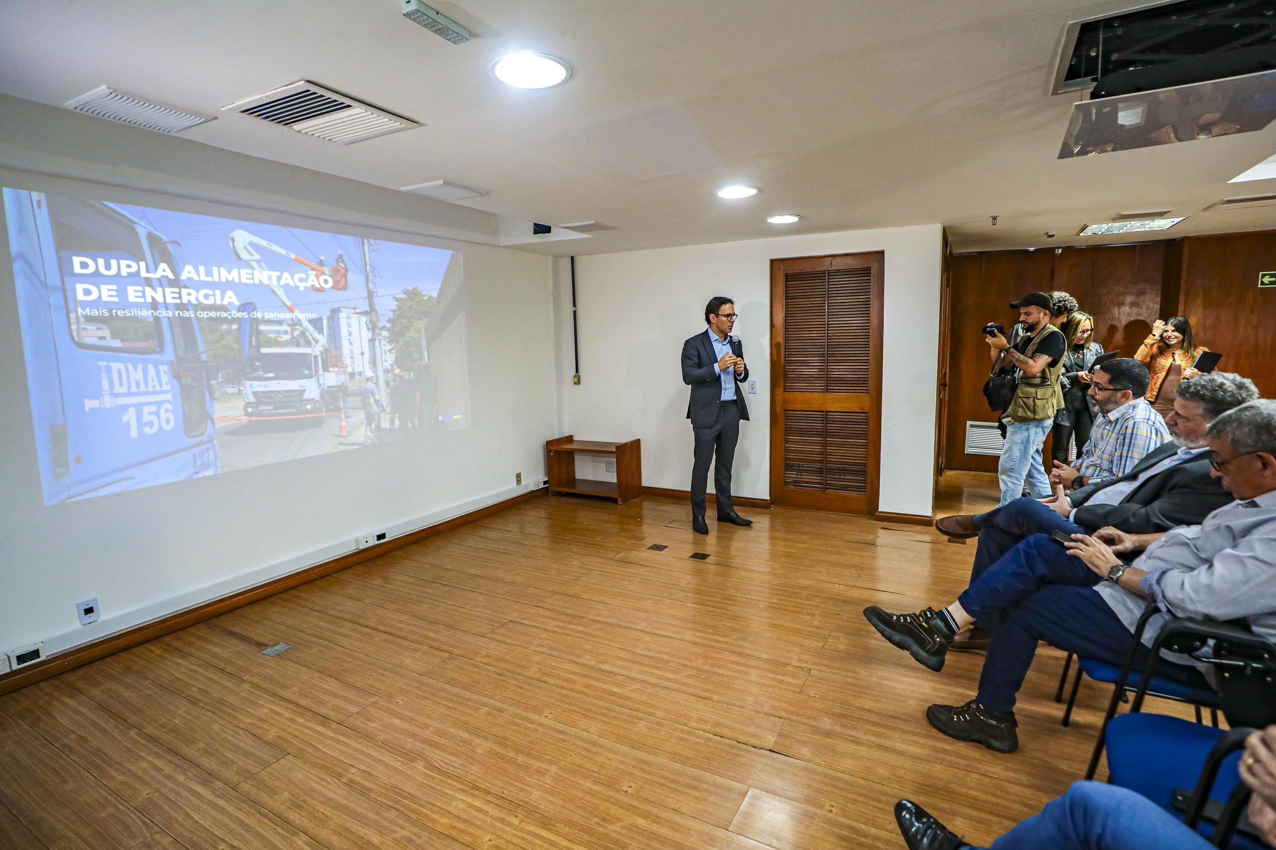 Porto Alegre, RS, Brasil, 06/11/2025: Prefeitura de Porto Alegre e CEEE Equatorial assinaram na manhã desta quinta-feira, 6, o contrato que prevê a implantação de uma linha exclusiva de fornecimento de energia para a operação do Departamento Municipal de Água e Esgotos (Dmae). O objetivo é garantir o funcionamento ininterrupto dos serviços de saneamento, mesmo durante episódios climáticos extremos - como cheias e temporais. Foto: Alex Rocha/PMPA