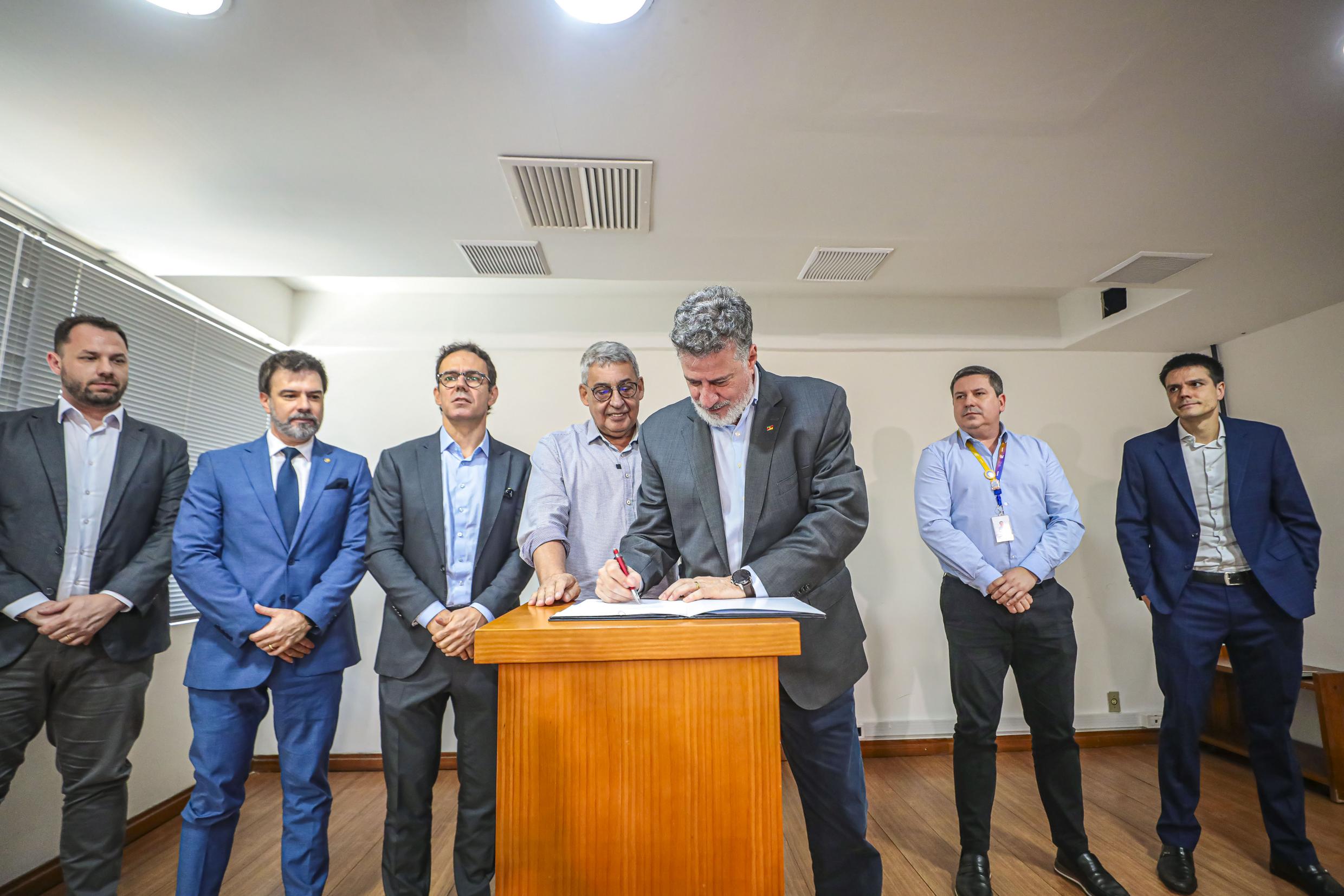 Porto Alegre, RS, Brasil, 06/11/2025: Prefeitura de Porto Alegre e CEEE Equatorial assinaram na manhã desta quinta-feira, 6, o contrato que prevê a implantação de uma linha exclusiva de fornecimento de energia para a operação do Departamento Municipal de Água e Esgotos (Dmae). O objetivo é garantir o funcionamento ininterrupto dos serviços de saneamento, mesmo durante episódios climáticos extremos - como cheias e temporais. Foto: Alex Rocha/PMPA