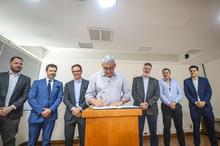 Porto Alegre, RS, Brasil, 06/11/2025: Prefeitura de Porto Alegre e CEEE Equatorial assinaram na manhã desta quinta-feira, 6, o contrato que prevê a implantação de uma linha exclusiva de fornecimento de energia para a operação do Departamento Municipal de Água e Esgotos (Dmae). O objetivo é garantir o funcionamento ininterrupto dos serviços de saneamento, mesmo durante episódios climáticos extremos - como cheias e temporais. Foto: Alex Rocha/PMPA