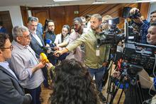 Porto Alegre, RS, Brasil, 06/11/2025: Prefeitura de Porto Alegre e CEEE Equatorial assinaram na manhã desta quinta-feira, 6, o contrato que prevê a implantação de uma linha exclusiva de fornecimento de energia para a operação do Departamento Municipal de Água e Esgotos (Dmae). O objetivo é garantir o funcionamento ininterrupto dos serviços de saneamento, mesmo durante episódios climáticos extremos - como cheias e temporais. Foto: Alex Rocha/PMPA