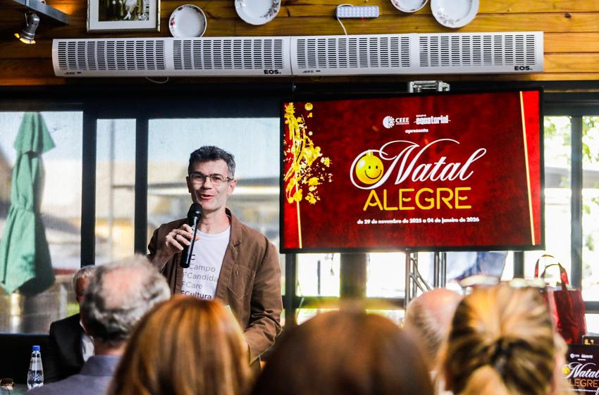 Porto Alegre, RS, Brasil - 06/11/2025: Nesta quinta-feira, 6, às 15h30, uma coletiva de imprensa no restaurante Mamma Mia, do Cais Embarcadero, apresentou o Natal Alegre, o maior evento natalino da Capital. A iniciativa marca o início das celebrações de fim de ano na cidade. Foto: Julia Ferreira/PMPA