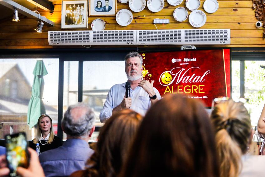 Porto Alegre, RS, Brasil - 06/11/2025: Nesta quinta-feira, 6, às 15h30, uma coletiva de imprensa no restaurante Mamma Mia, do Cais Embarcadero, apresentou o Natal Alegre, o maior evento natalino da Capital. A iniciativa marca o início das celebrações de fim de ano na cidade. Foto: Julia Ferreira/PMPA