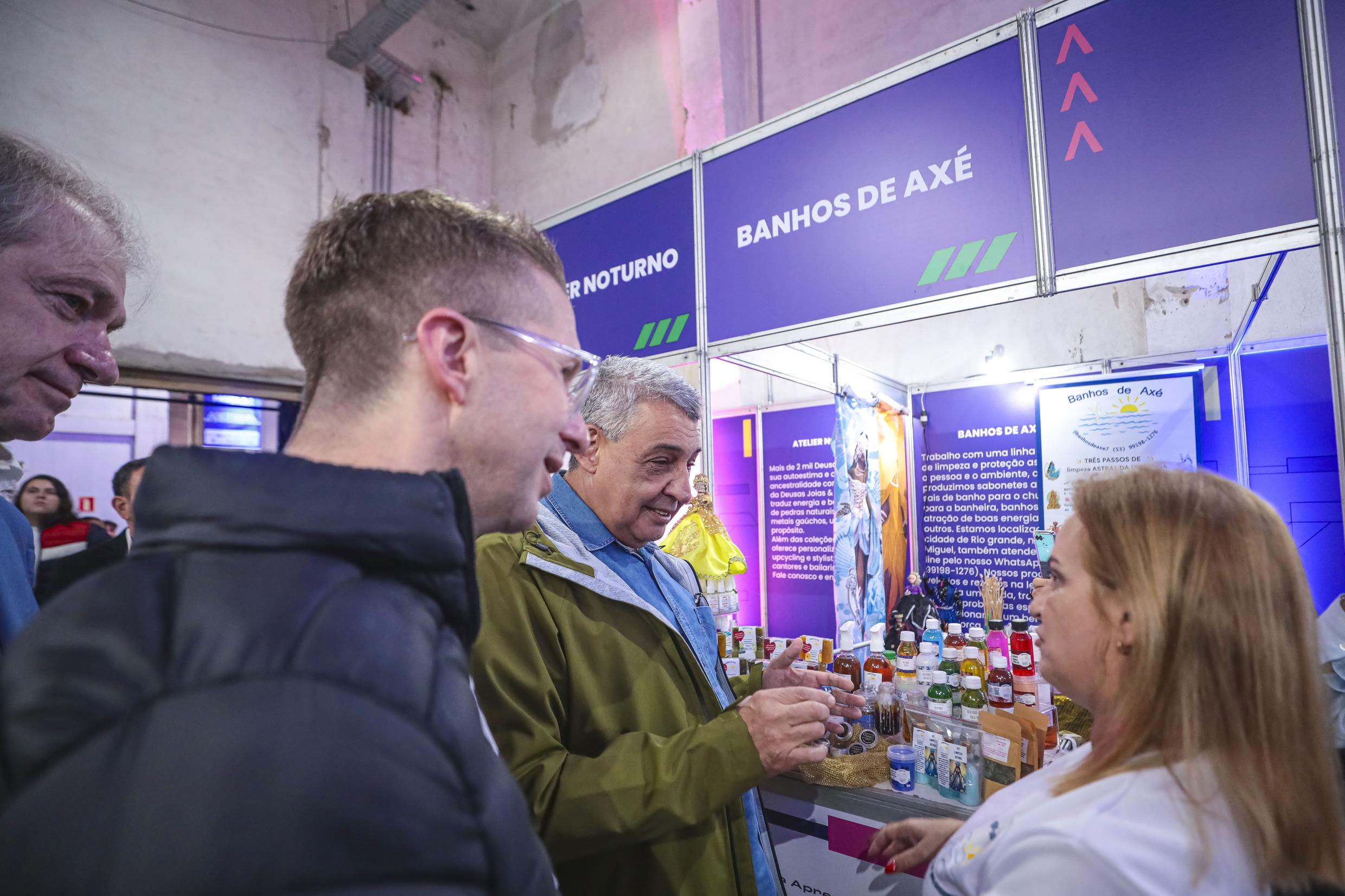 Porto Alegre, RS, Brasil, 07/11/2025: O prefeito, Sebastião Melo, na presença de outras autoridades, participou, na manhã desta sexta-feira (07), da cerimônia de abertura da Expofavela 2025, encontro de negócios, empreendedorismo e transformação social das periferias. O evento segue neste sábado, 8, na Fábrica Guayba, no Instituto Caldeira, Travessa São José, 455, bairro Navegantes. No estande da prefeitura, com 35 metros quadrados, haverá atendimento aos participantes do evento e uma programação diversa, incluindo painéis e oficinas com temas sobre inovação, empreendedorismo e cultura criativa. Foto: Alex Rocha/PMPA
