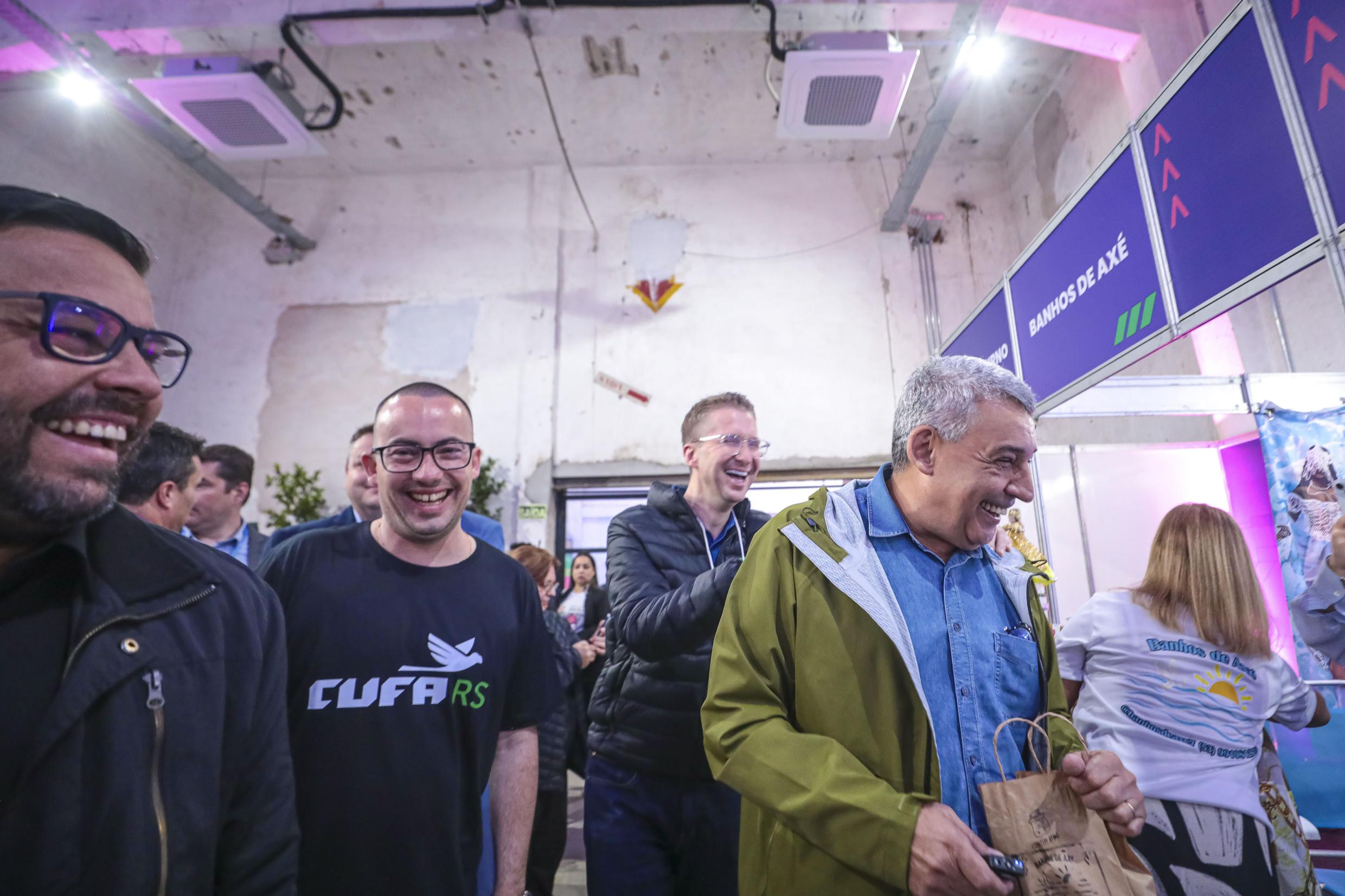 Porto Alegre, RS, Brasil, 07/11/2025: O prefeito, Sebastião Melo, na presença de outras autoridades, participou, na manhã desta sexta-feira (07), da cerimônia de abertura da Expofavela 2025, encontro de negócios, empreendedorismo e transformação social das periferias. O evento segue neste sábado, 8, na Fábrica Guayba, no Instituto Caldeira, Travessa São José, 455, bairro Navegantes. No estande da prefeitura, com 35 metros quadrados, haverá atendimento aos participantes do evento e uma programação diversa, incluindo painéis e oficinas com temas sobre inovação, empreendedorismo e cultura criativa. Foto: Alex Rocha/PMPA