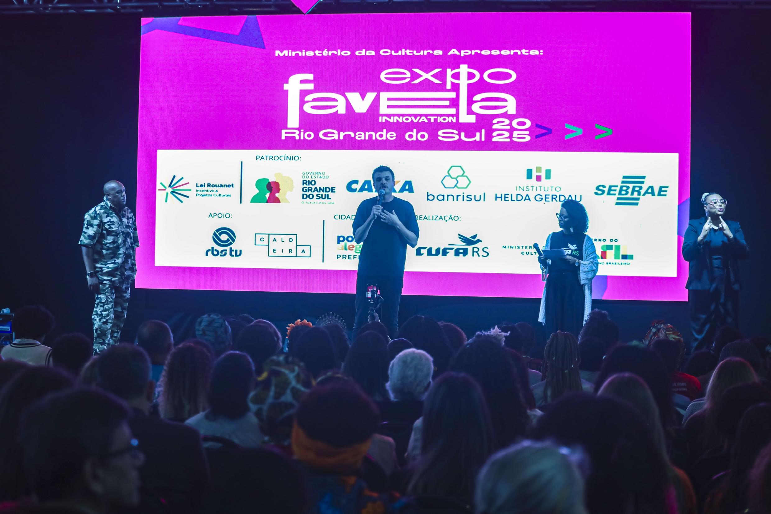 Porto Alegre, RS, Brasil, 07/11/2025: O prefeito, Sebastião Melo, na presença de outras autoridades, participou, na manhã desta sexta-feira (07), da cerimônia de abertura da Expofavela 2025, encontro de negócios, empreendedorismo e transformação social das periferias. O evento segue neste sábado, 8, na Fábrica Guayba, no Instituto Caldeira, Travessa São José, 455, bairro Navegantes. No estande da prefeitura, com 35 metros quadrados, haverá atendimento aos participantes do evento e uma programação diversa, incluindo painéis e oficinas com temas sobre inovação, empreendedorismo e cultura criativa. Foto: Alex Rocha/PMPA