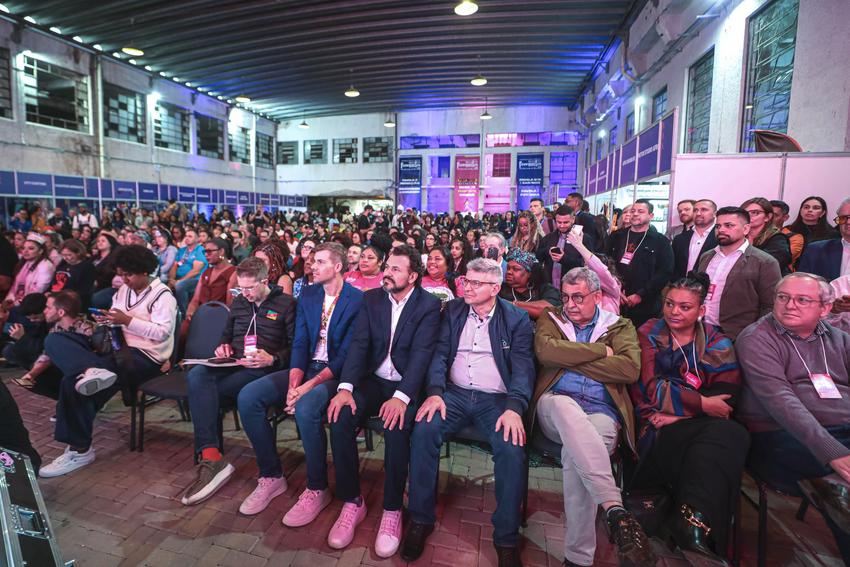 Porto Alegre, RS, Brasil, 07/11/2025: O prefeito, Sebastião Melo, na presença de outras autoridades, participou, na manhã desta sexta-feira (07), da cerimônia de abertura da Expofavela 2025, encontro de negócios, empreendedorismo e transformação social das periferias. O evento segue neste sábado, 8, na Fábrica Guayba, no Instituto Caldeira, Travessa São José, 455, bairro Navegantes. No estande da prefeitura, com 35 metros quadrados, haverá atendimento aos participantes do evento e uma programação diversa, incluindo painéis e oficinas com temas sobre inovação, empreendedorismo e cultura criativa. Foto: Alex Rocha/PMPA