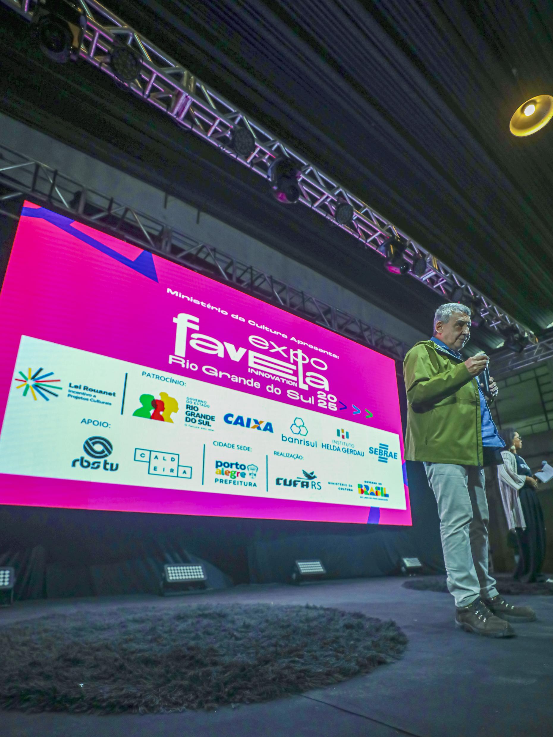 Porto Alegre, RS, Brasil, 07/11/2025: O prefeito, Sebastião Melo, na presença de outras autoridades, participou, na manhã desta sexta-feira (07), da cerimônia de abertura da Expofavela 2025, encontro de negócios, empreendedorismo e transformação social das periferias. O evento segue neste sábado, 8, na Fábrica Guayba, no Instituto Caldeira, Travessa São José, 455, bairro Navegantes. No estande da prefeitura, com 35 metros quadrados, haverá atendimento aos participantes do evento e uma programação diversa, incluindo painéis e oficinas com temas sobre inovação, empreendedorismo e cultura criativa. Foto: Alex Rocha/PMPA