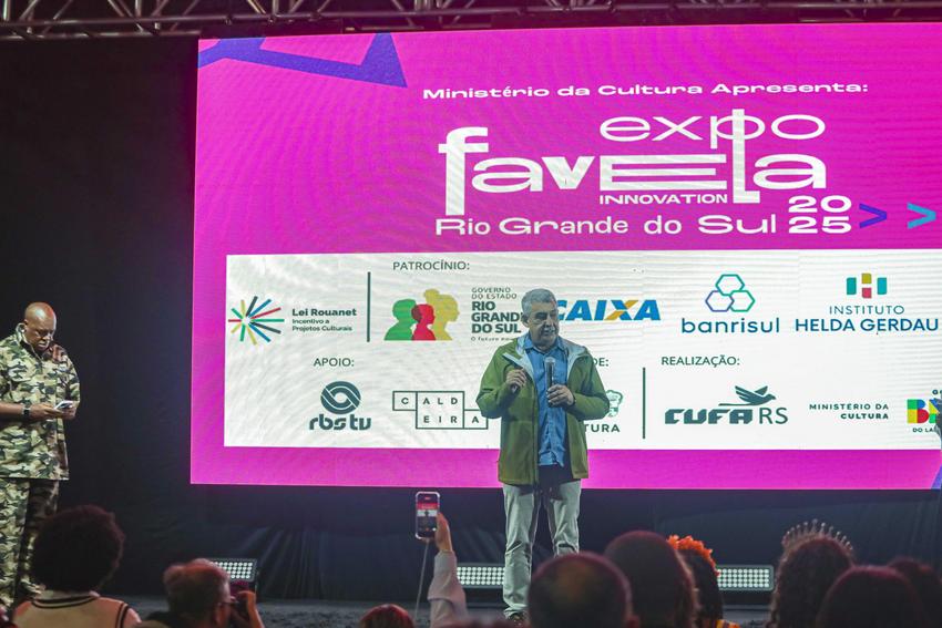 Porto Alegre, RS, Brasil, 07/11/2025: O prefeito, Sebastião Melo, na presença de outras autoridades, participou, na manhã desta sexta-feira (07), da cerimônia de abertura da Expofavela 2025, encontro de negócios, empreendedorismo e transformação social das periferias. O evento segue neste sábado, 8, na Fábrica Guayba, no Instituto Caldeira, Travessa São José, 455, bairro Navegantes. No estande da prefeitura, com 35 metros quadrados, haverá atendimento aos participantes do evento e uma programação diversa, incluindo painéis e oficinas com temas sobre inovação, empreendedorismo e cultura criativa. Foto: Alex Rocha/PMPA