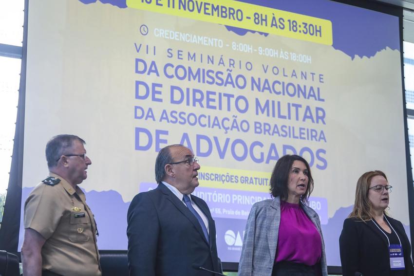 Porto Alegre, RS, Brasil, 10/11/2025: A prefeita em exercício, Comandante Nádia, participou, na manhã desta segunda-feira (10), da abertura do VII Seminário Volante da Comissão de Direito Militar da OAB/RS. Foto: Alex Rocha/PMPA