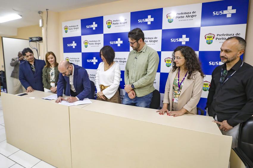Porto Alegre, RS, Brasil, 11/11/2025: Na manhã desta terça-feira (11), a prefeita em exercício, Comandante Nádia, participou, da solenidade simbólica de assinatura da portaria que atualiza as regras para a concessão e renovação de alvará de saúde e licenças de transporte no município e reconhecimento institucional às autoridades e entidades envolvidas. Foto: Alex Rocha/PMPA