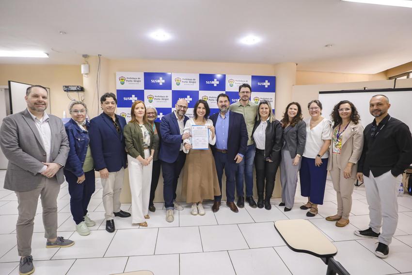 Porto Alegre, RS, Brasil, 11/11/2025: Na manhã desta terça-feira (11), a prefeita em exercício, Comandante Nádia, participou, da solenidade simbólica de assinatura da portaria que atualiza as regras para a concessão e renovação de alvará de saúde e licenças de transporte no município e reconhecimento institucional às autoridades e entidades envolvidas. Foto: Alex Rocha/PMPA