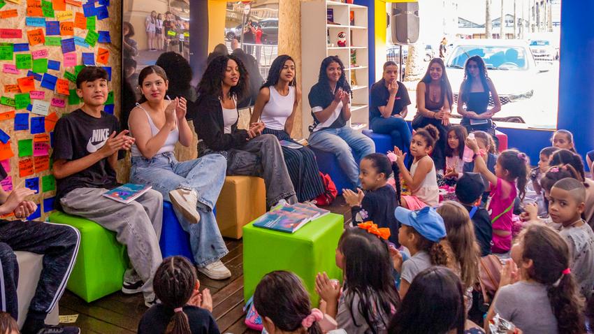 educação crítica e antirracista" dos alunos da EMEF São Pedro no Estante da SMED na 71º Feira do Livro de Porto Alegre. Foto: Henry Rodrigues/SMED/PMPA