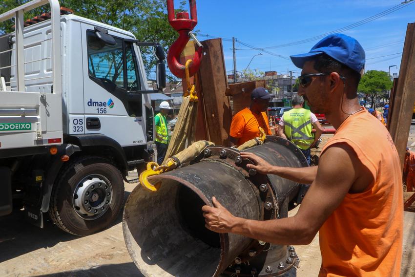 Porto Alegre, RS. 12/11/2025. DMAE realiza interligação de rede de sucção da EBAT Sarandi