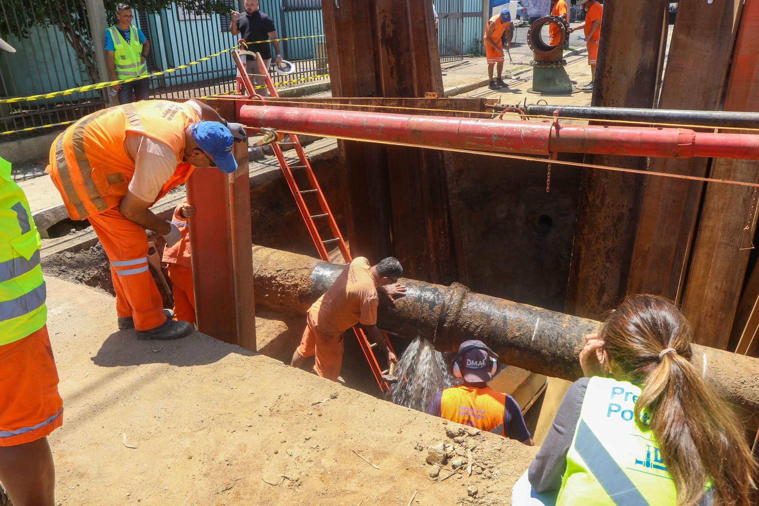 Porto Alegre, RS. 12/11/2025. DMAE realiza interligação de rede de sucção da EBAT Sarandi