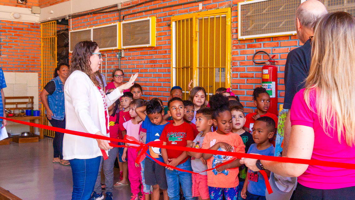 Porto Alegre, RS, Brasil - 12/11/2025: A EMEI Oscar dos Santos Freitas (Marzico) reinaugurou seu espaço externo, revitalizado pelo Instituto Cyrela. O local recebeu melhorias no piso, novo mobiliário e artes nas paredes, tornando-se um ambiente renovado de acolhimento, brincadeiras e desenvolvimento para as turmas da escola. EMEI Osmar dos Santos Freitas: R. Dona Otília, 497 - Santa Tereza. Foto: Henry Rodrigues/ SMED / PMPA