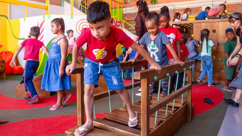 Porto Alegre, RS, Brasil - 12/11/2025: A EMEI Oscar dos Santos Freitas (Marzico) reinaugurou seu espaço externo, revitalizado pelo Instituto Cyrela. O local recebeu melhorias no piso, novo mobiliário e artes nas paredes, tornando-se um ambiente renovado de acolhimento, brincadeiras e desenvolvimento para as turmas da escola. EMEI Osmar dos Santos Freitas: R. Dona Otília, 497 - Santa Tereza. Foto: Henry Rodrigues/ SMED / PMPA