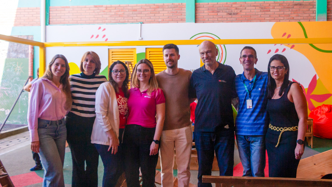 Porto Alegre, RS, Brasil - 12/11/2025: A EMEI Oscar dos Santos Freitas (Marzico) reinaugurou seu espaço externo, revitalizado pelo Instituto Cyrela. O local recebeu melhorias no piso, novo mobiliário e artes nas paredes, tornando-se um ambiente renovado de acolhimento, brincadeiras e desenvolvimento para as turmas da escola. EMEI Osmar dos Santos Freitas: R. Dona Otília, 497 - Santa Tereza. Foto: Henry Rodrigues/ SMED / PMPA