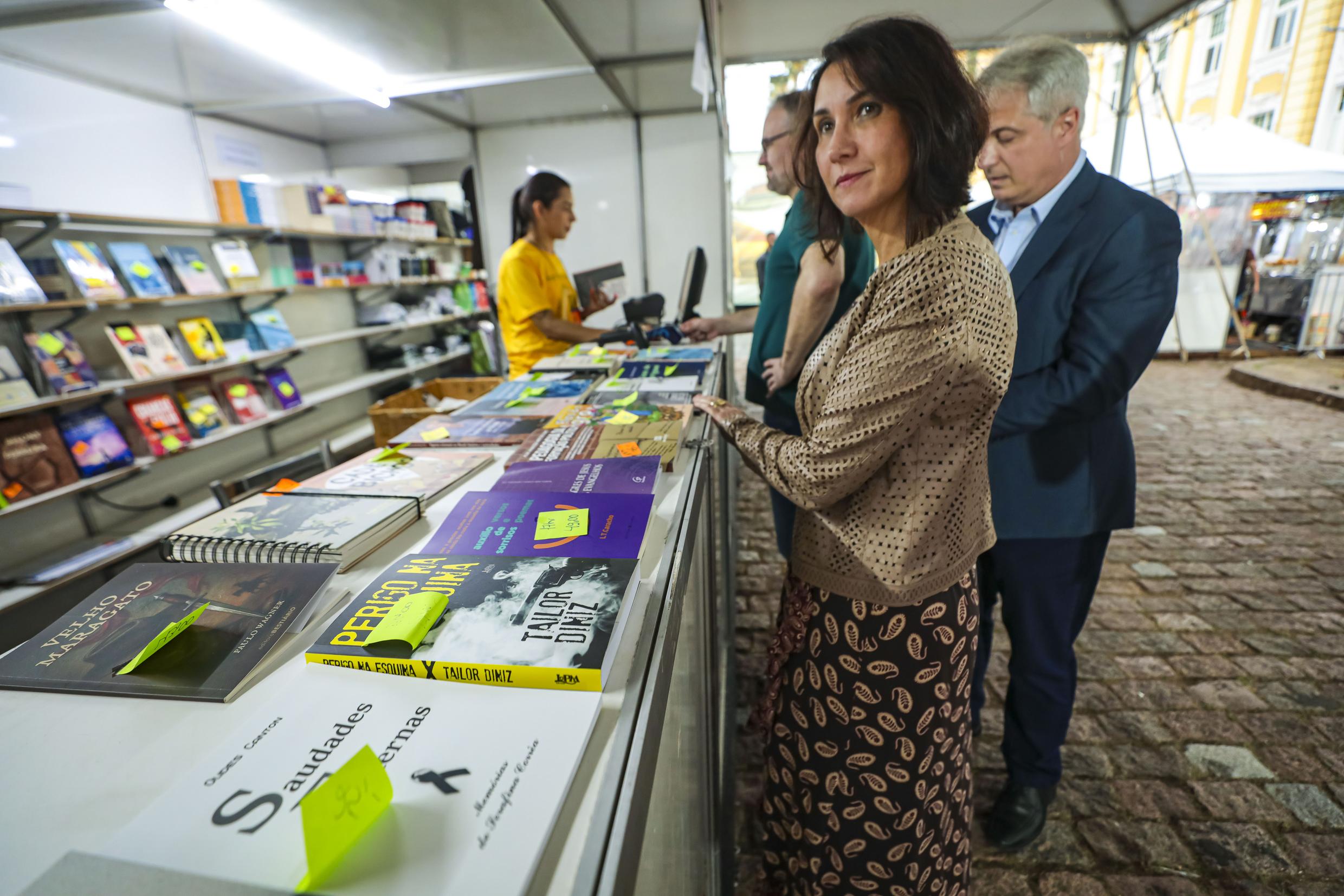 Porto Alegre, RS, Brasil, 12/11/2025: A prefeita em exercício, Comandante Nádia, prestigiou, na tarde desta quarta-feira (12), durante a 71ª edição da Feira do Livro de Porto Alegre, na praça da Alfândega, o lançamento do livro e sessão de autógrafos: Uma mulher chamada Cabo Toco, das autoras Fátima Gimenez, Nilo Bairros de Brum, com Martins Livreiro-Editora. Foto: Alex Rocha/PMPA