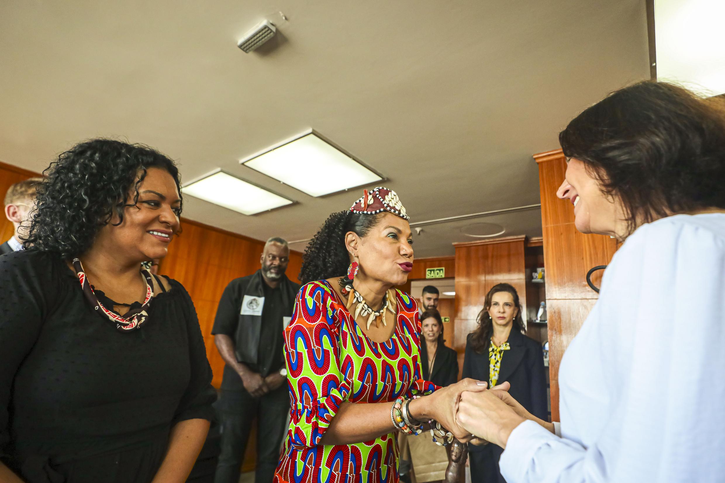 Porto Alegre, RS, Brasil, 13/11/2025: A prefeita em exercício, Comandante Nádia, recebeu nesta quinta-feira, 13, a rainha da República Democrática do Congo, Diambi Kabatusuila, para uma visita no Centro Administrativo Municipal (CAM). Foto: Alex Rocha/PMPA