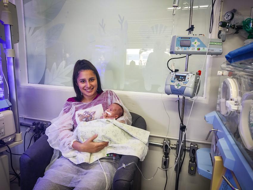 Na foto, Yarlei, que nasceu com 29 semanas e 1,4 quilo. O parto ocorreu às pressas no Hospital Materno-Infantil Presidente Vargas (HMIPV) para surpresa dos pais do bebê, Kethelin Ammes Vieira, 26 anos, e Yargo Ribeiro Teixeira. Foto: Georgia Moreira/Divulgação SMS/PMPA