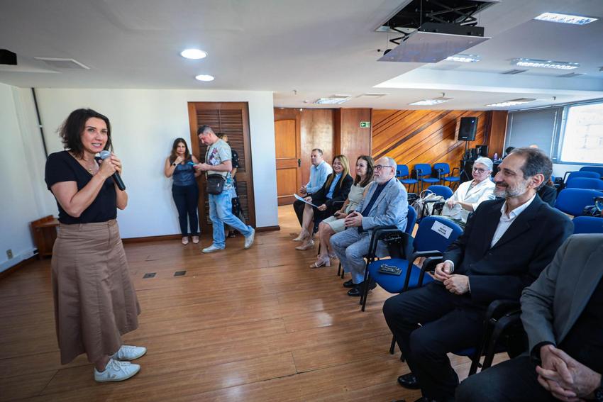 Porto Alegre, RS, Brasil, 14/11/2025: A prefeita em exercício, Comandante Nádia, sancionou, durante cerimônia na tarde desta sexta-feira (14), realizada no Centro Administrativo Municipal Guilherme Socias Villela (CAM), a lei do vereador Pedro Ruas (PLL nº 357/25), que tomba como patrimônio histórico-cultural do município de Porto Alegre a Igreja Metodista Wesley. Foto: Alex Rocha/PMPA