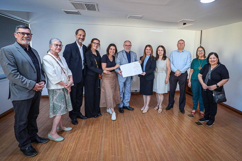 Porto Alegre, RS, Brasil, 14/11/2025: A prefeita em exercício, Comandante Nádia, sancionou, durante cerimônia na tarde desta sexta-feira (14), realizada no Centro Administrativo Municipal Guilherme Socias Villela (CAM), a lei do vereador Pedro Ruas (PLL nº 357/25), que tomba como patrimônio histórico-cultural do município de Porto Alegre a Igreja Metodista Wesley. Foto: Alex Rocha/PMPA