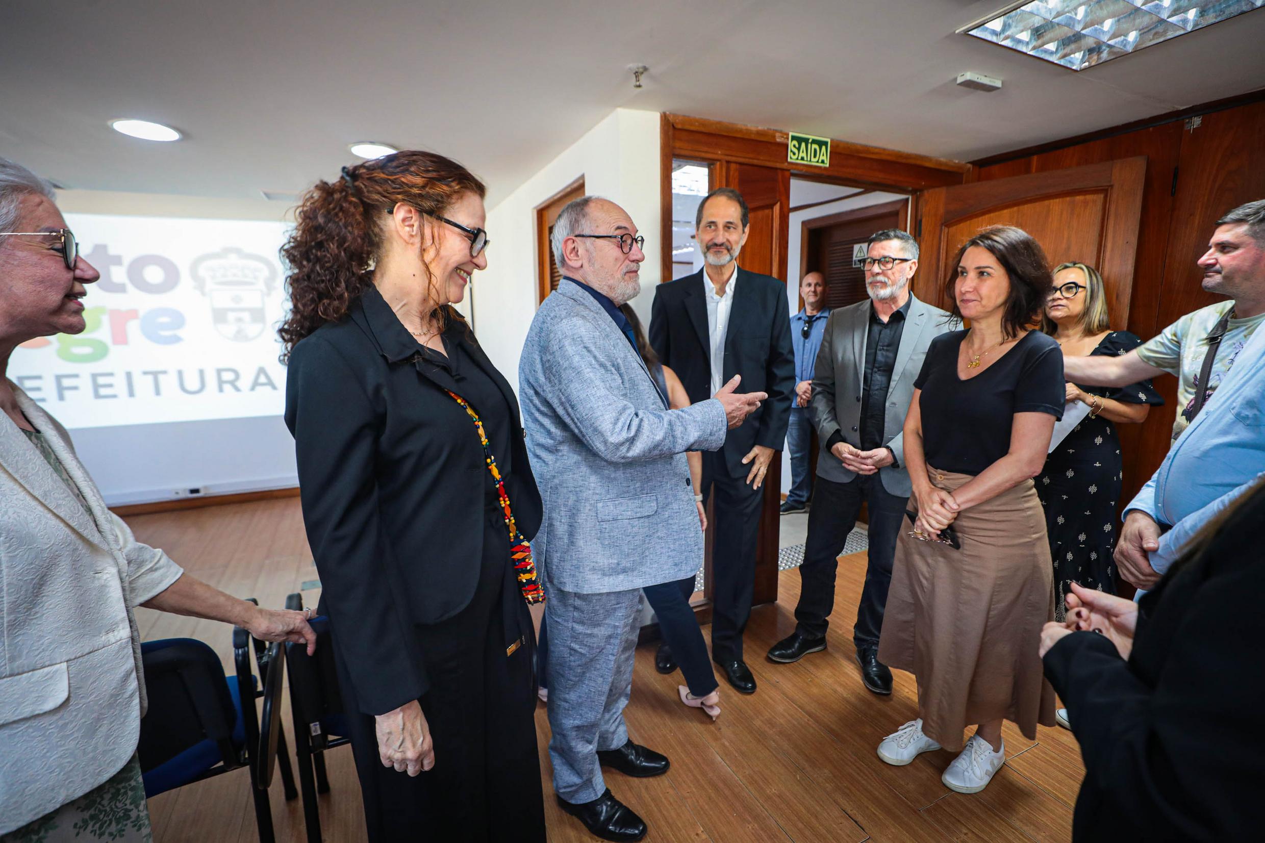 Porto Alegre, RS, Brasil, 14/11/2025: A prefeita em exercício, Comandante Nádia, sancionou, durante cerimônia na tarde desta sexta-feira (14), realizada no Centro Administrativo Municipal Guilherme Socias Villela (CAM), a lei do vereador Pedro Ruas (PLL nº 357/25), que tomba como patrimônio histórico-cultural do município de Porto Alegre a Igreja Metodista Wesley. Foto: Alex Rocha/PMPA
